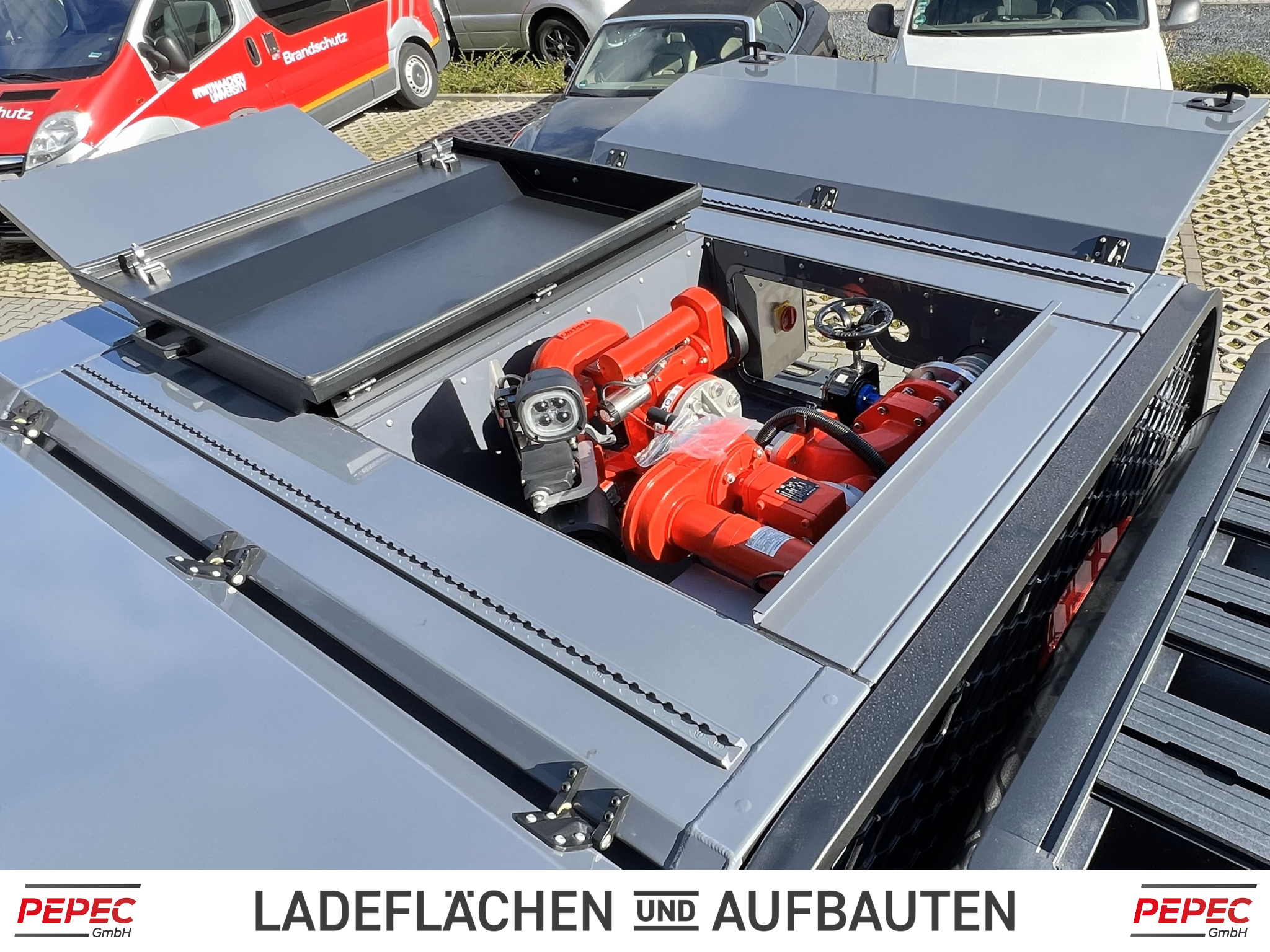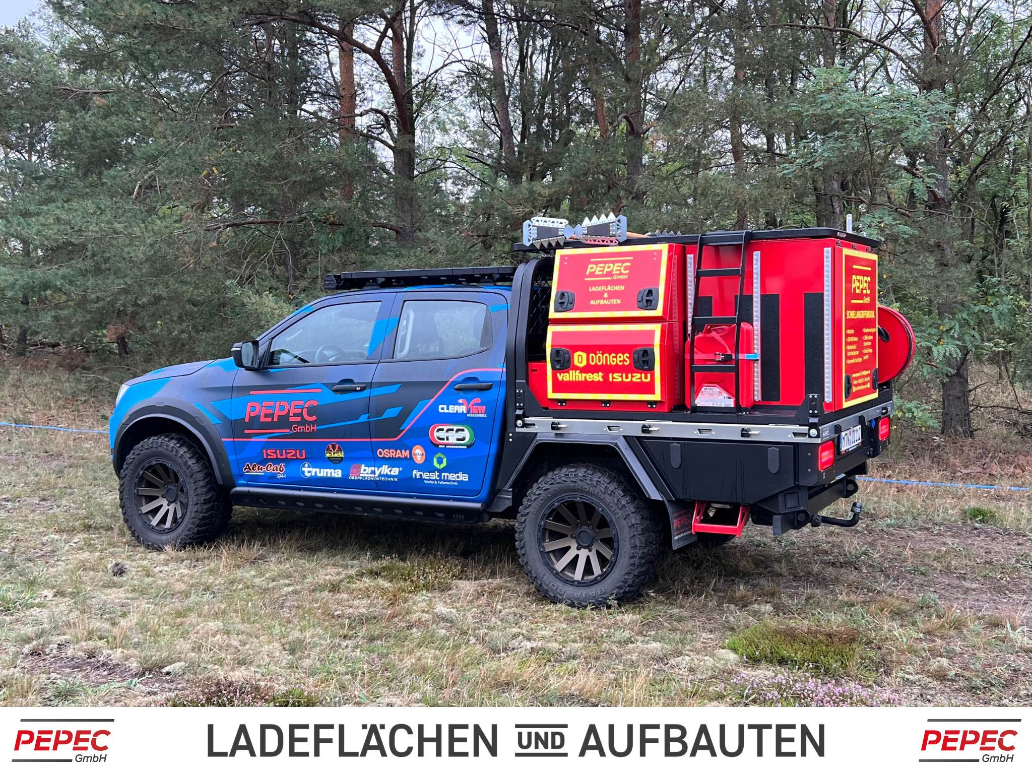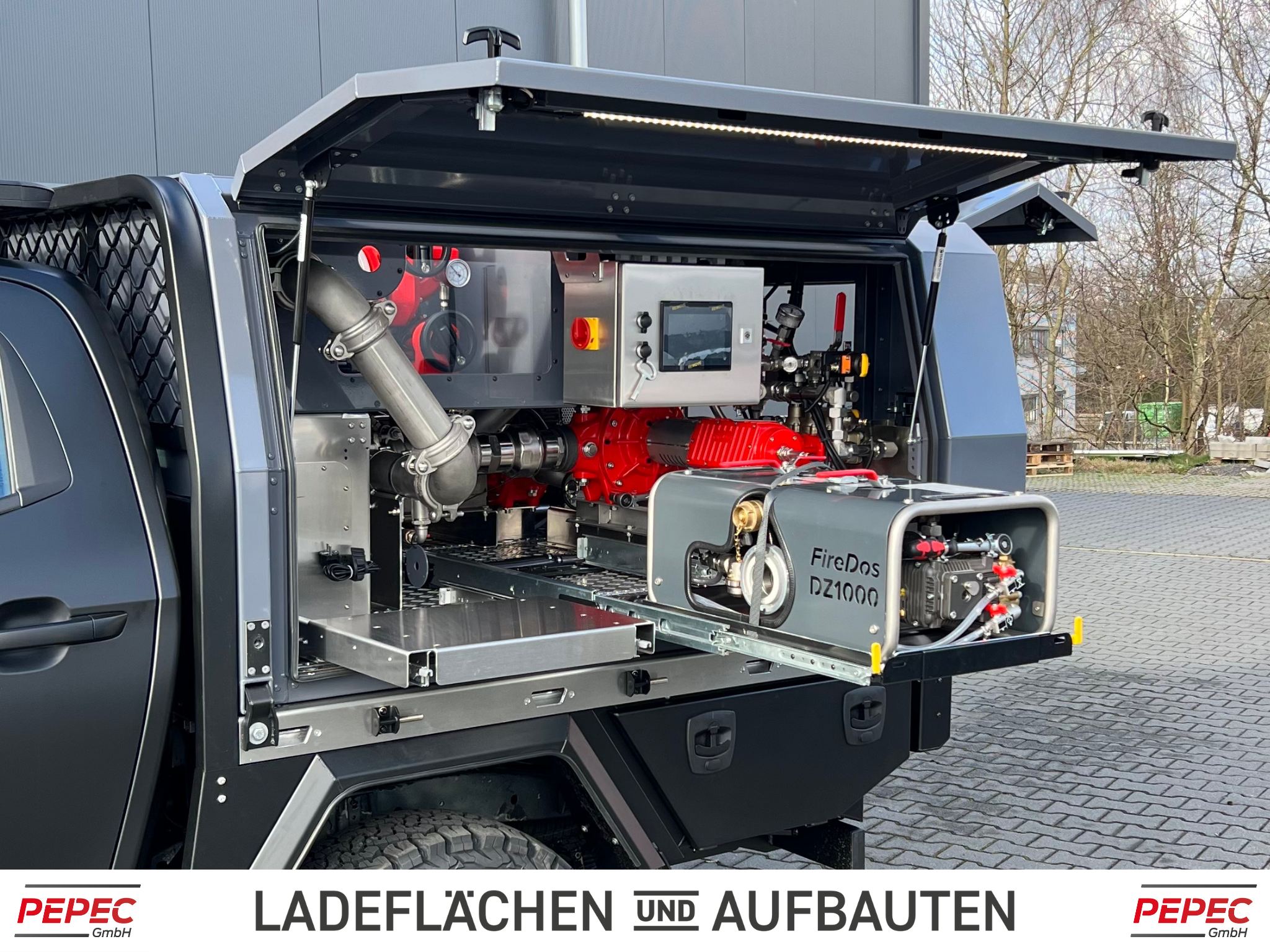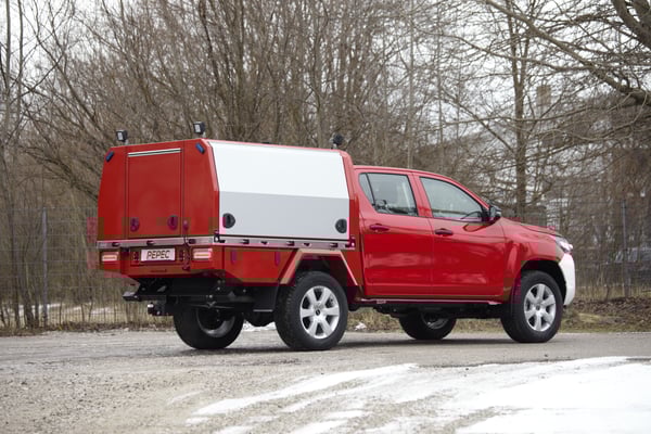 Als Basis dient ein Ford Ranger Pickup aktuellster Modellgeneration, der mit einer PEPEC Ladefläche mit absetzbarer Box ausgestattet wurde.